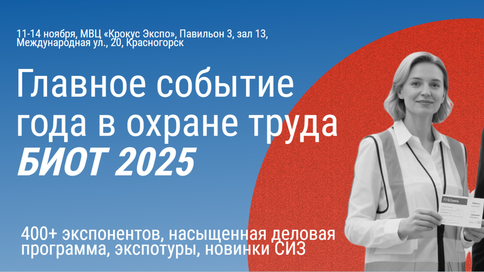 С 11 по 14 ноября на территории МВЦ «Крокус Экспо» в Москве состоится Международный форум и 29-я международная специализированная выставка «Безопасность и охрана труда» (БИОТ–2025).