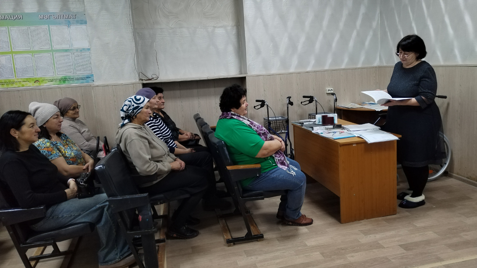 На очередном групповом занятии для социальных работников обсудили тему «Коммуникация как центральный элемент ухода». Слушатели ознакомились с особенностями коммуникации с лицами, которые нуждаются в уходе, видами коммуникации и этикой общения.