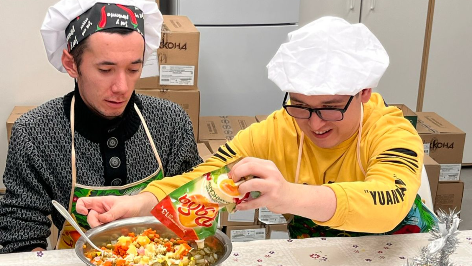 Оливье – традиционный новогодний салат, который любят многие. Для молодых людей из группы дневного пребывания «Юлдаш» Комплексного центра социального обслуживания населения «Эмет» Высокогорского района провели кулинарный мастер-класс по приготовлению этого салата.