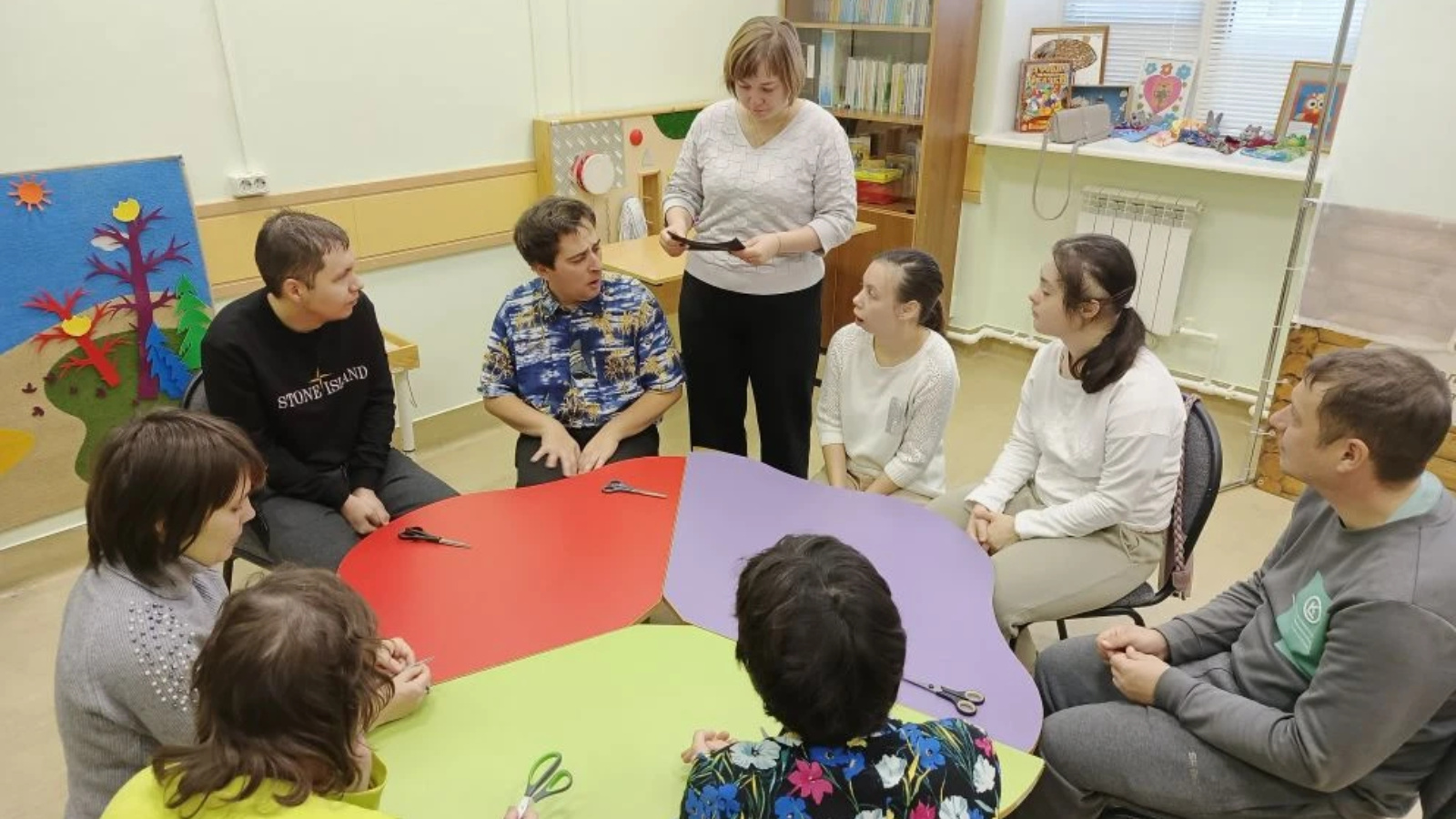 11 декабря психолог отделения социальной помощи семье и детям Комплексного центра социального обслуживания населения «Опека» в Альметьевском районе провел творческое занятие для людей с ментальными особенностями. Праздничная встреча прошла в уютном кабинете «Лекотека».