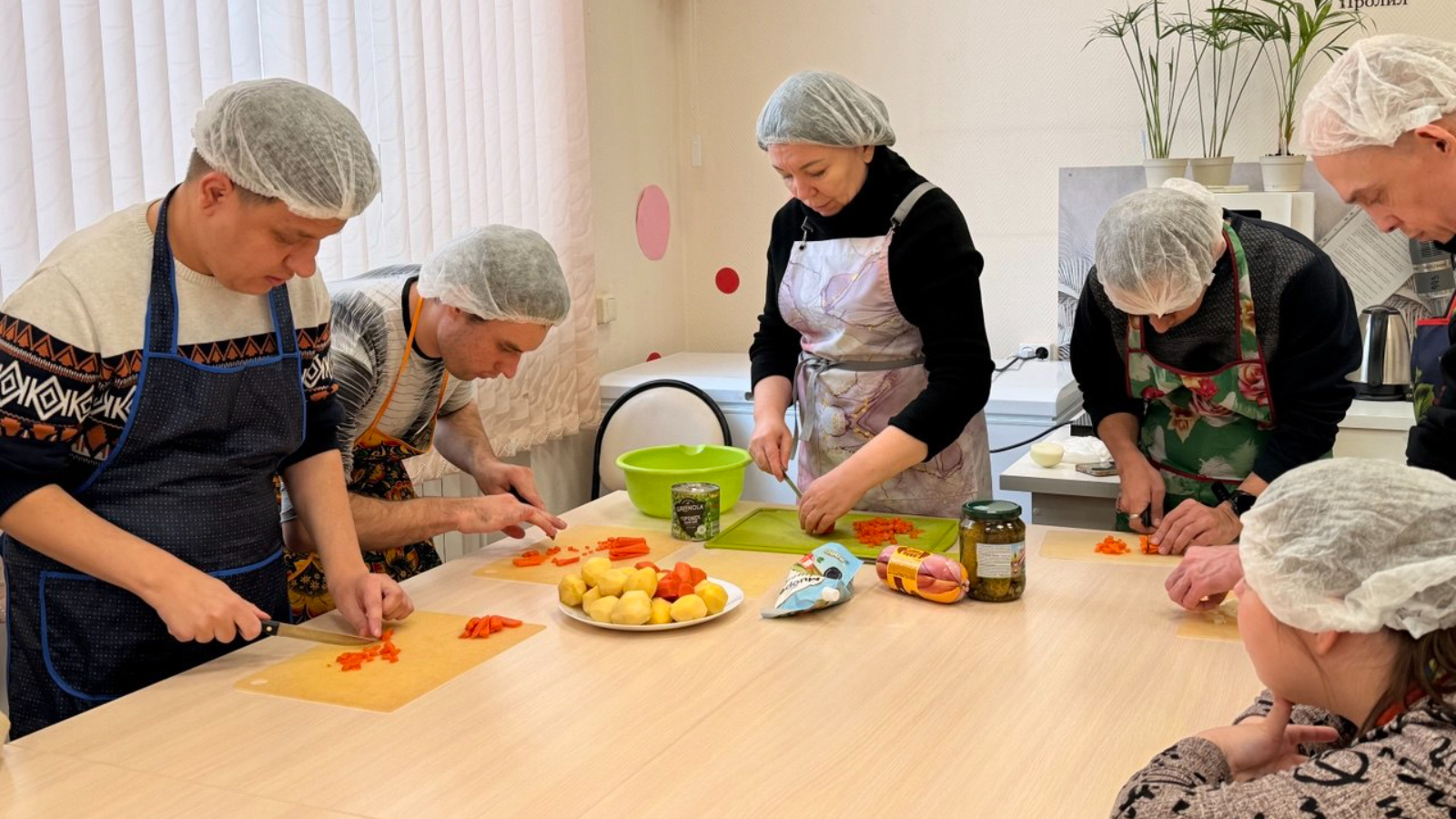 В преддверии Нового года для подопечных отделения провели кулинарное занятие по приготовлению традиционного новогоднего салата оливье. Во время занятия участники повторяли и закрепляли важные навыки. Такой подход помогает формировать у подопечных полезные бытовые навыки и развивать ответственность.