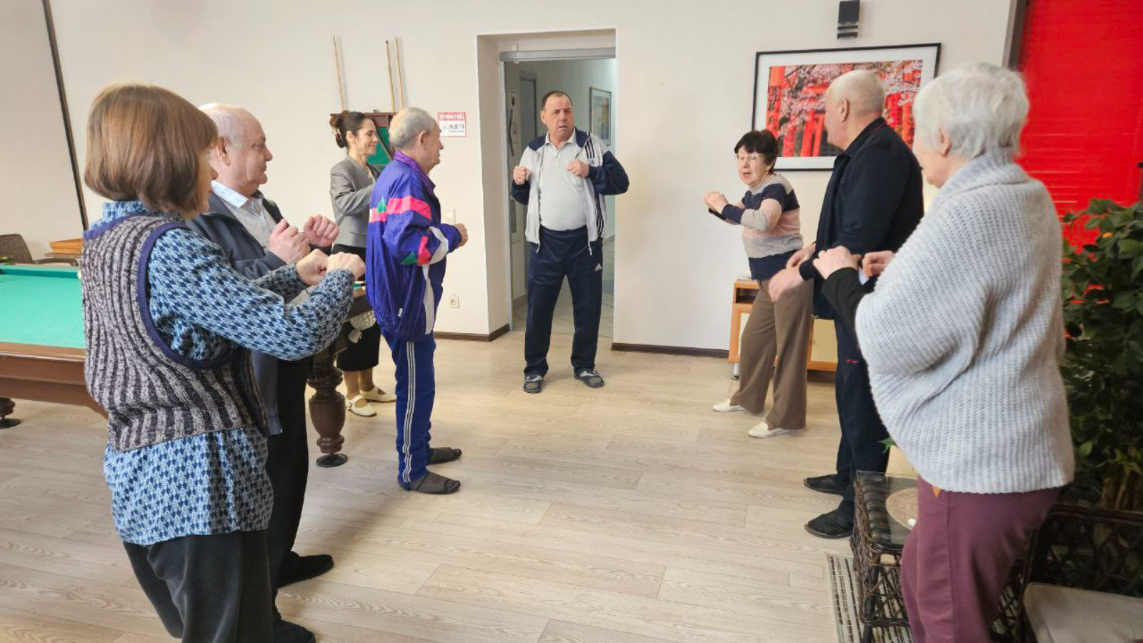 Получатели социальных услуг повторяли плавные движения, звуки, для нормализации давления проводили самомассаж головы, мысленно концентрировались на своих внутренних органах.