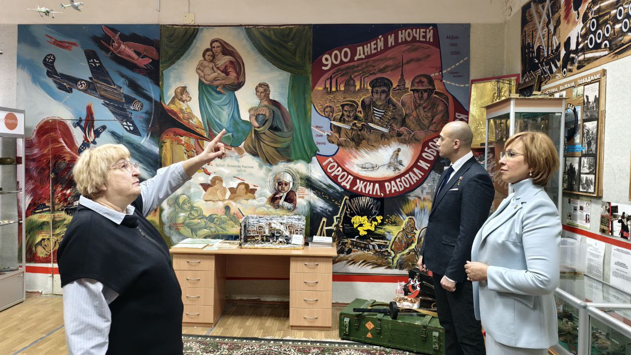 Эльмира Зарипова также посетила школьный музей блокадного Ленинграда, созданный директором школы Татьяной Петровой, которая является дочерью и внучкой блокадников.
