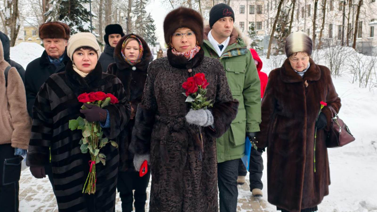 Сегодня, когда отмечается 82-я годовщина полного освобождения Ленинграда от фашистской блокады, министр труда, занятости и социальной защиты Республики Татарстан Эльмира Зарипова приняла участие памятном мероприятии в сквере у ДК им. Саид-Галиева в поселке Дербышки. Здесь каждый год 27 января возлагают цветы к памятнику жителям блокадного Ленинграда. Эльмиру Зарипову сопровождал заместитель министра, Герой России Расим Баксиков.