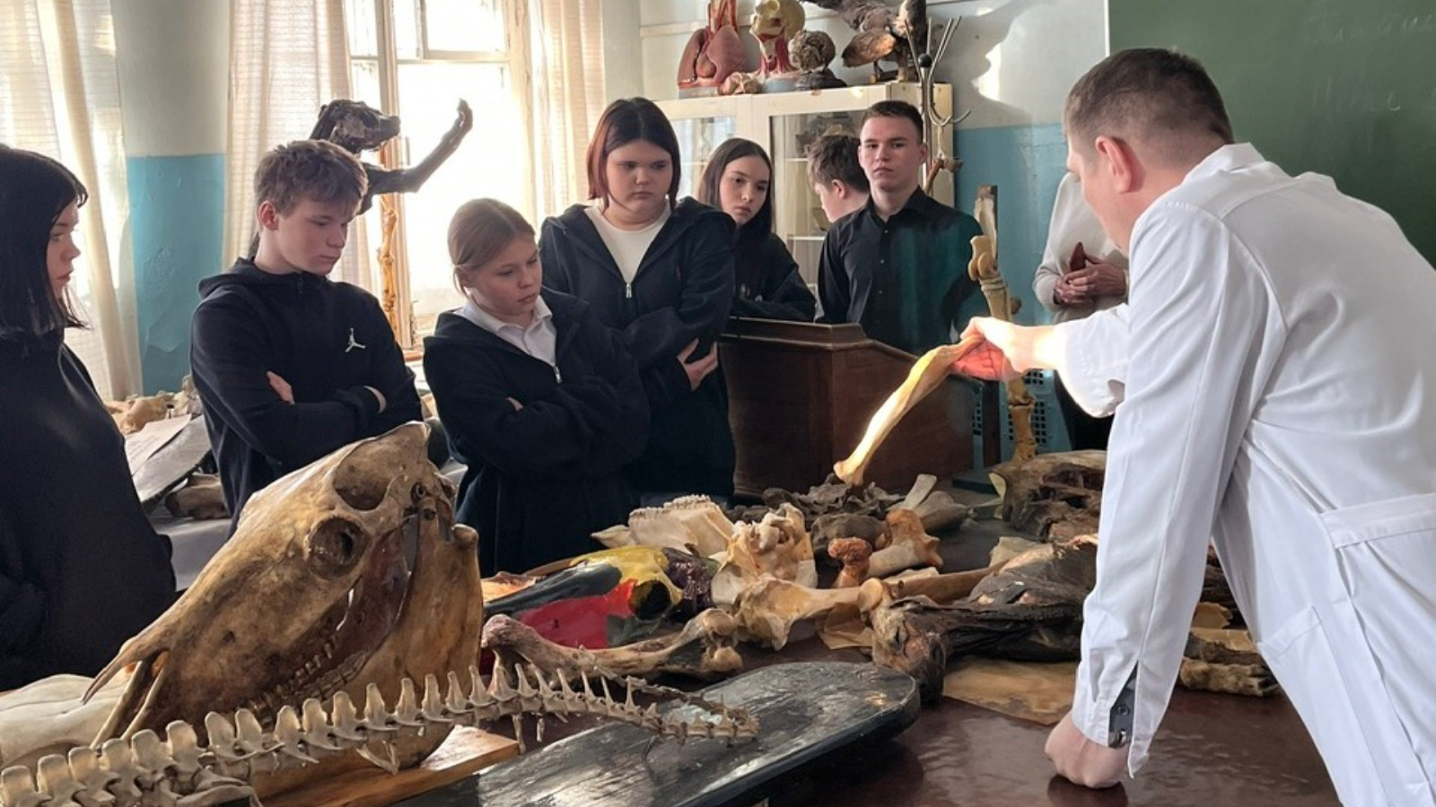 Маршрут профориентационной экскурсии был очень насыщенным. Сначала ребята стали участниками интерактивной игры, отвечали на каверзные вопросы о строении животных. Затем дети рассматривали анатомические препараты, скелеты, разглядывали под микроскопом клетки. Следующим сюрпризом была встреча с иностранными студентами, которые рассказали о своей стране.
