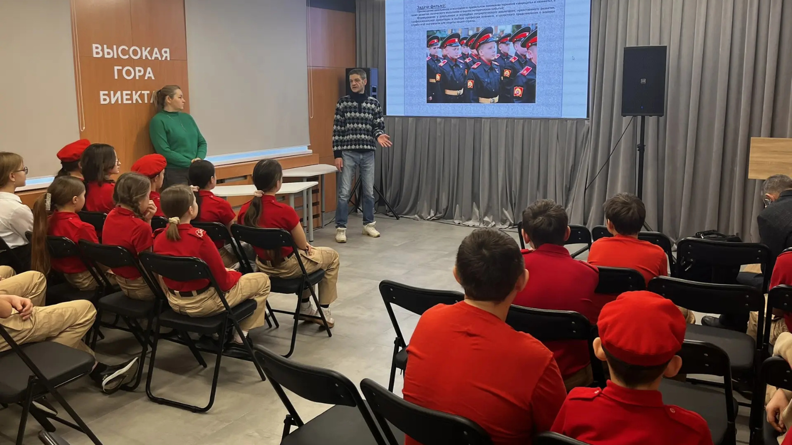 «Победа – в нашей крови» – так называется документальный фильм, режиссером которого является Алексей Егорычев. Он лично рассказал подросткам о проекте, участниках и сюжете. Также важной частью мероприятия стала беседа о важности сохранения памяти и смысле воинской службы.