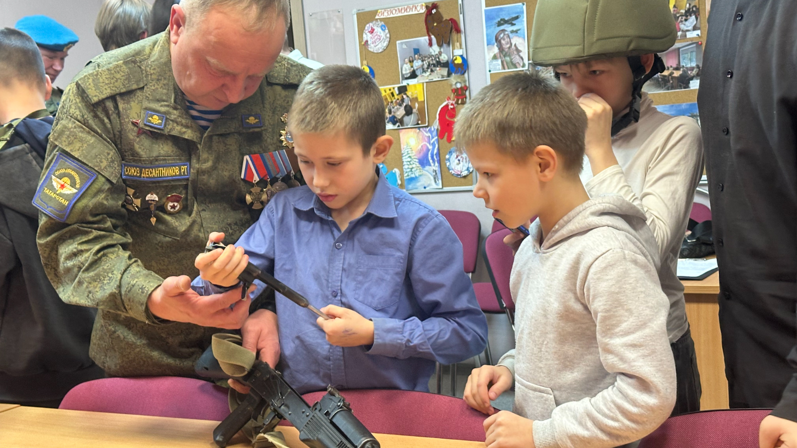 Социальные педагоги отделения социальной помощи семье и детям в Московском районе Казани совместно с представителем общероссийского общественно-государственного движения детей и молодежи «Движение первых» А. Дагаевой, председателем регионального отделения общественной организации «Союз десантников по Республике Татарстан», депутатом Юрием Суворовым, представителем Содружества пограничников Республики Татарстан Айратом Абдуллиным и представителем Союза десантников г. Казани Андреем Надеждиным провели для несовершеннолетних, состоящих на социальном обслуживании, мероприятие «Россия сильна сынами-героями».