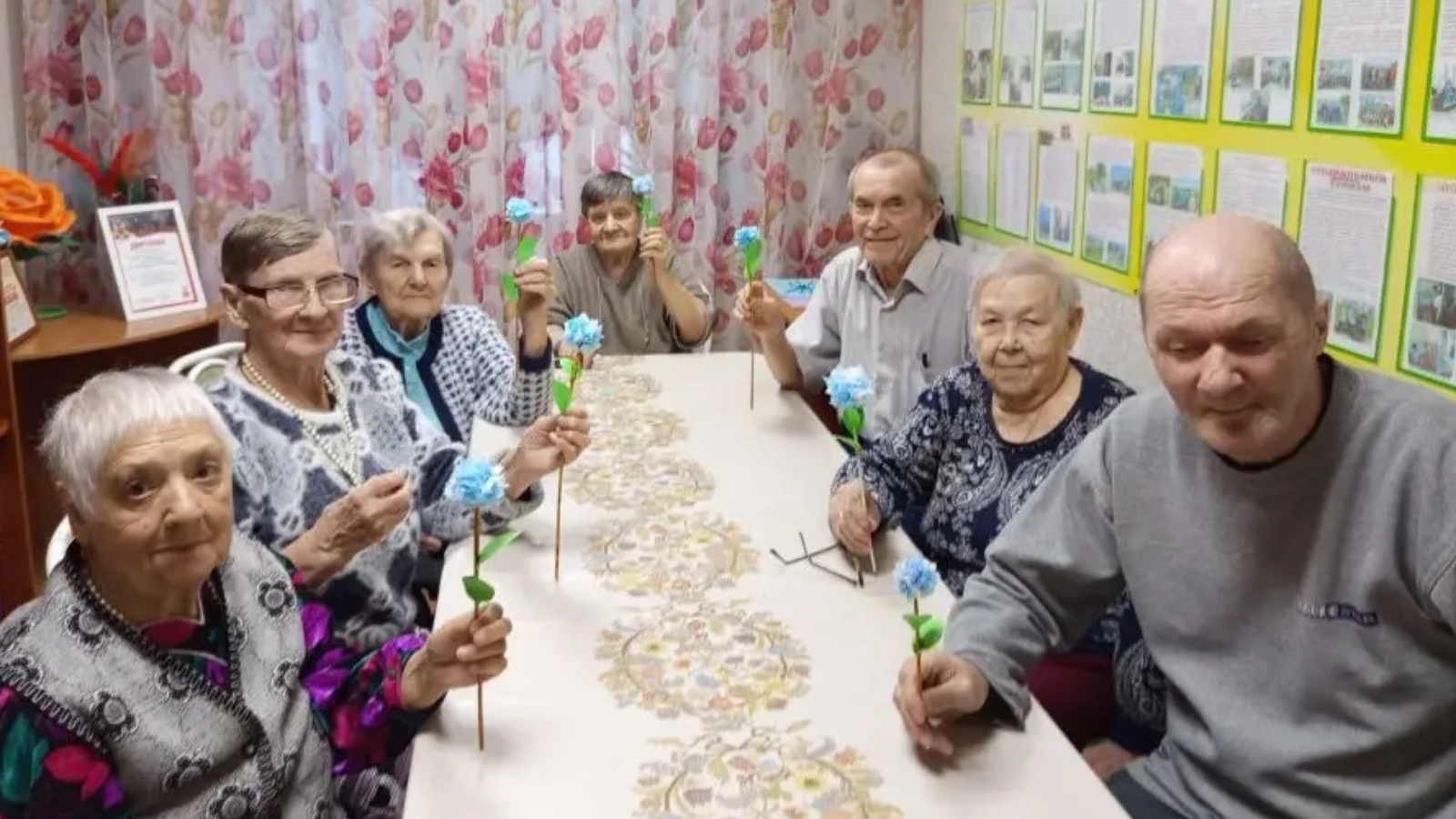 Под руководством инструктора по труду Татьяны Стригачевой получатели социальных услуг сделали оригинальные цветы из бросового материала. Использовали одноразовые медицинские маски, пластилин, цветную бумагу и зубочистки. Сначала нарезали квадратики из масок, из пластилина слепили шар, с помощью зубочисток скрепили детали и зафиксировали пластилином. Для стеблей и листиков взяли цветную бумагу. В процессе работы участники активно делились идеями, помогали друг другу и с удовольствием общались. Готовые цветы поставили в вазу, сделанную получателем социальных услуг Андреем Беляковым.