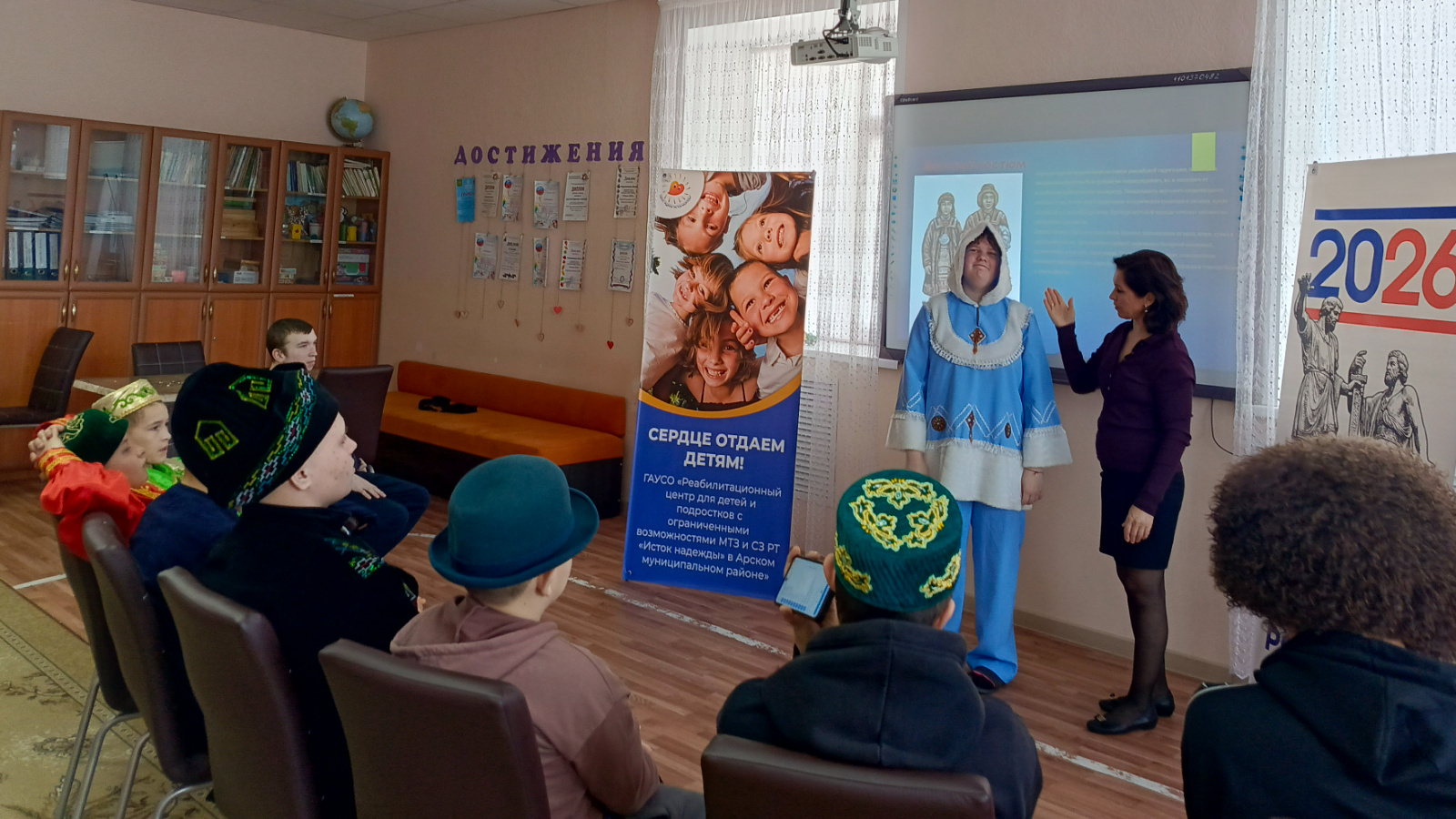 В рамках Года единства народов России с детьми старшей группы Реабилитационного центра для детей и подростков с ограниченными возможностями «Исток надежды» Арского района учитель-дефектолог Инна Нурмиева провела познавательное мероприятие «Цветущая Россия: гармония многообразия».