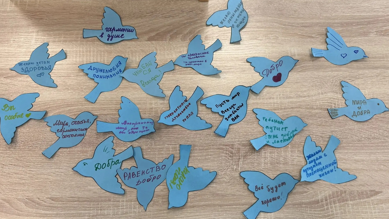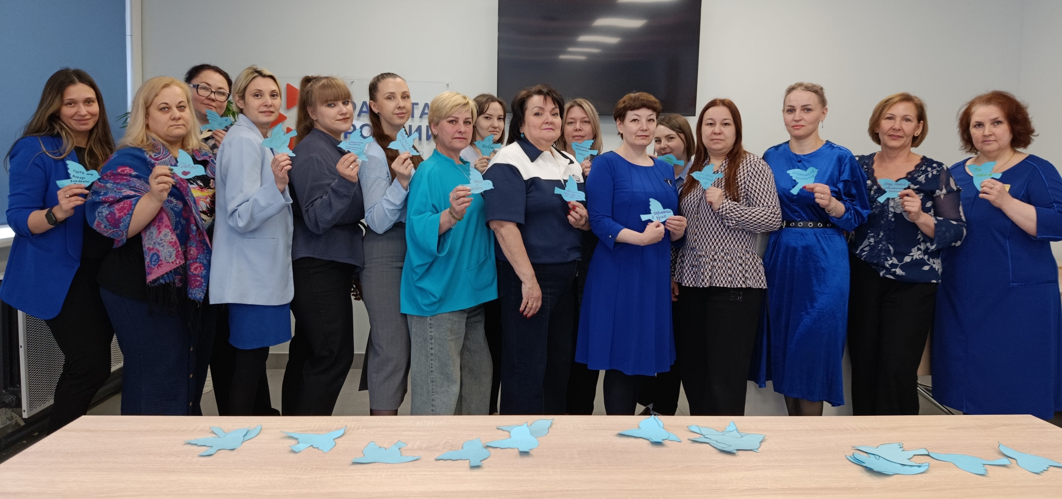 - «Синяя птица надежды»: каждый сотрудник и посетитель отделения написал теплое пожелание для детей с аутизмом и их семей. Эти пожелания были оформлены в виде бумажных птиц и размещены на специальной выставке, которая стала живым символом поддержки и заботы.