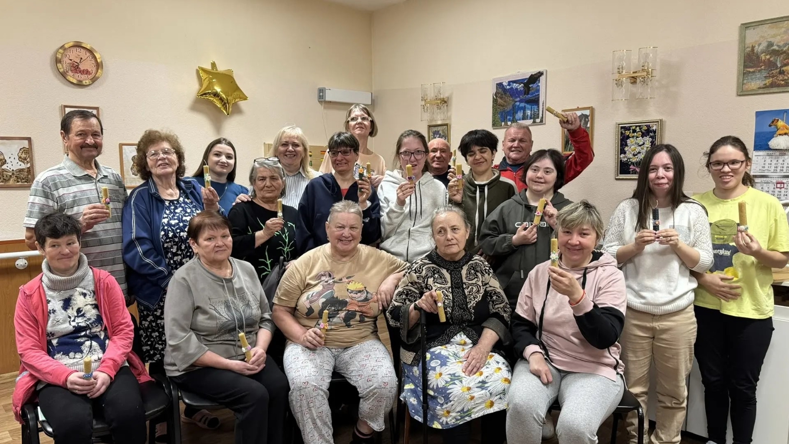 Получателям социальных услуг предложили самостоятельно изготовить свечи из пчелиного воска. Лариса Попова подробно рассказала о технологии и методах создания свечей, акцентируя внимание на важности плотного скручивания вощины. Она наглядно продемонстрировала все этапы процесса, объясняя, почему это так важно для качественного результата. Под чутким руководством организаторов реабилитанты смогли своими руками создать красивые свечи.