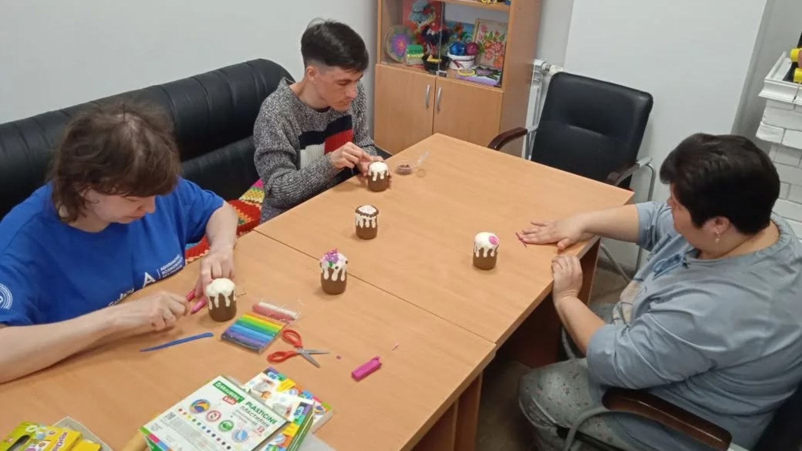 В преддверии Пасхи в отделении дневного пребывания Центра реабилитации инвалидов «Ветеран» г. Альметьевска состоялся мастер-класс по созданию пасхальных куличей в технике пластилинографии.