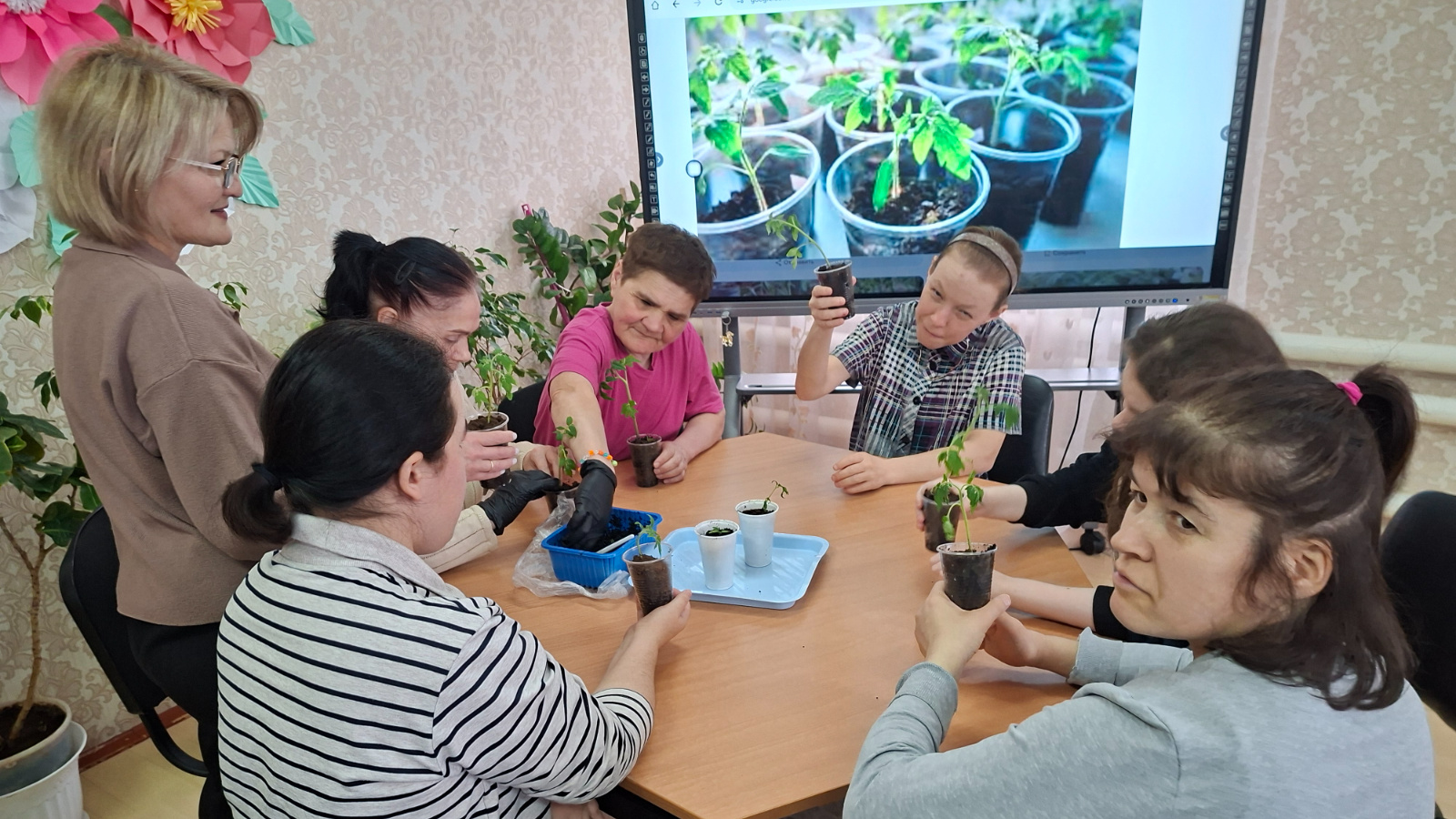 На занятии по гарденотерапии получатели социальных услуг отделения дневного пребывания Комплексного центра социального обслуживания населения «Забота» в Мамадышском районе познакомились с принципами пересадки рассады, научились правильно готовить грунт, выбирать подходящий горшок и минимизировать стресс для растения. Особое внимание было уделено технике, при которой корневая система сохраняется максимально целостной.