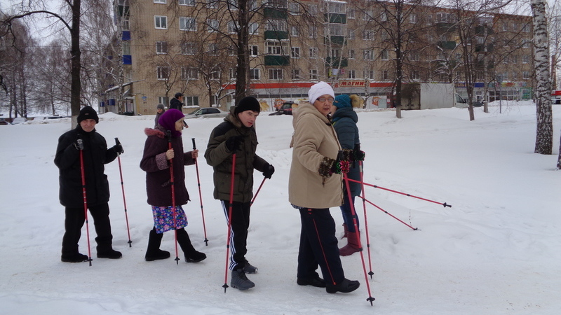Адаптив физик культура инструкторы скандинав йөреше буенча төркемле дәрес үткәрде. Дәресләр саф һавада узды.