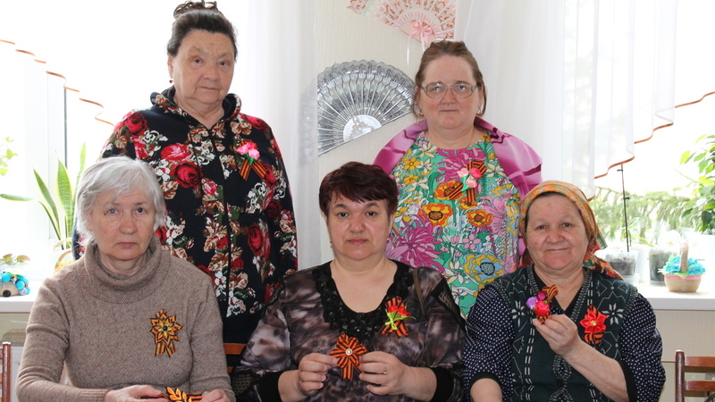 Өлкән яшьтәге гражданнар һәм инвалидлар бик теләп үз куллары белән тасмадан ясаган декоратив брошьлар төрле һәм оригиналь килеп чыкты. Чарада һәр катнашучы үзенә истәлеккә әзерләгән Җиңү символын9нчы майда горурланып парадка тагып чыгачакларын әйттеләр.