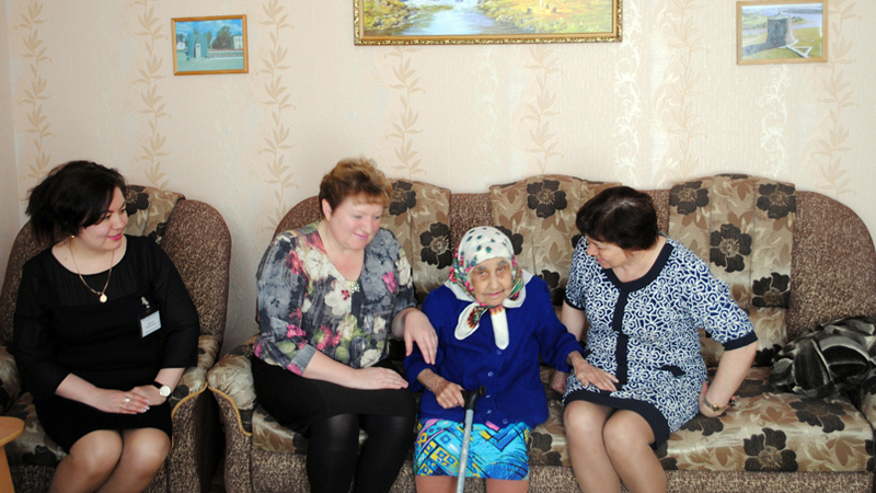 Яковлевск авылының башлыгы Ольга Козырева һәм башка җитәкчеләр тыл ветеранына җылы сүзләрен җиткерде, изге теләкләр теләделәр һәм бүләкләр тапшырдылар.