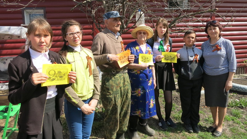 Балалар ветераннарга шигырь сөйләде, үз куллары белән ясалган открыткаларны, Георгий лентасы тапшырды. Ветераннар үз чиратларында балаларга авыр сугыш еллары хәтирәләре турында сөйләде. Балаларны кызыксындырган сорауларга җавап бирде.
