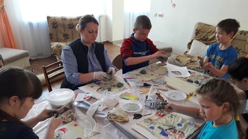 Менделеевск районының. “Кама таңнары” балалар һәм яшүсмерләр өчен социаль приютында балчыктан әвәләү дәресе оештырылды.