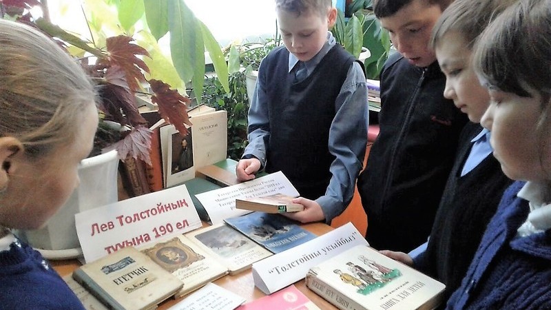 Лев Толстойның 190 еллыгына багышланган чаралар дәвам итә. Кайбычның "Өмет" социаль үзәге, районның Үзәк китапханәсе белән берлектә "Толстой белән көн" дигән акция оештырды.