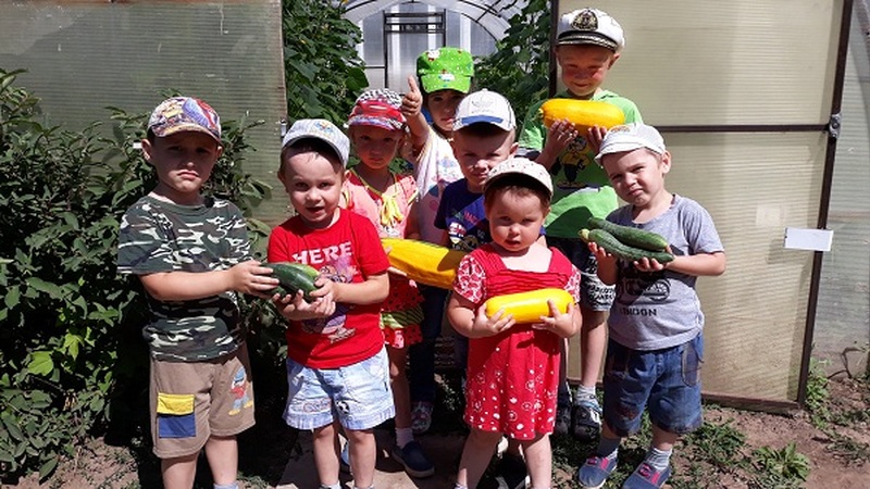 Шулай ук балалар үсемлекләрнең төзелешләрен, аларның файдасы турында мәгълүмат алды. Яшелчә, җиләк-җимешләрнең исемнәрен, аларны тәрбияләп үстерү кагыйдәләрен өйрәнделәр. Әңгәмә барышында "Бакчада нәрсәләр үсә?" викторинасы сорауларына җаваплар бирделәр. Балалар уңыш җыюда да катнашты.