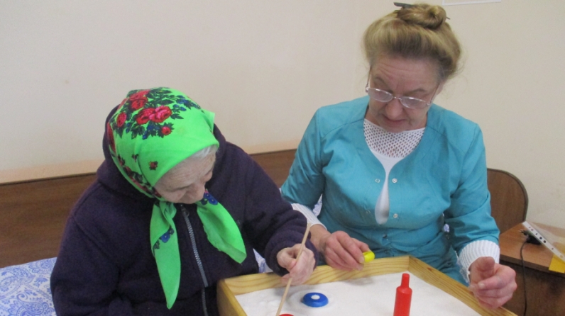 Минзәләнең өлкәннәр һәм инвалидлар өчен интернат-йорты тәрбиячесе атна саен аз хәрәкәтләнүче социаль хезмәт алучылар белән «Ком терапиясе» технологиясе буенча дәресләр үткәрә.