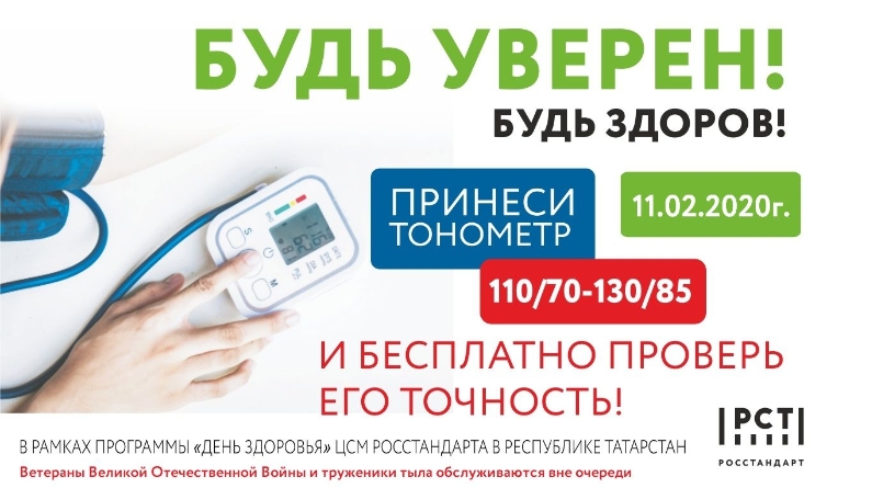 Бу көнне Росстандартның Татарстан Республикасындагы ЦСМ белгечләре халык тарафыннан кулланыла торган артериаль басымның көнкүреш тонометрларының параметрларын контрольдә тоту өчен гражданнарны кабул итәчәкләр.