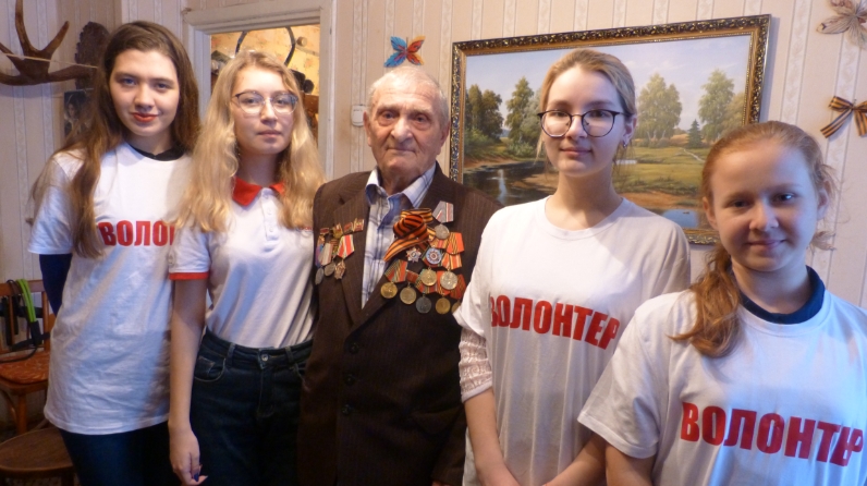 Лениногорск «Исток-Башлангыч» халыкка социаль хезмәт күрсәтү комплекслы үзәге белгечләре волонтерлар белән Бөек Ватан сугышы ветераны Александр Григорьевич Гуськовның өенә барып кайттылар.