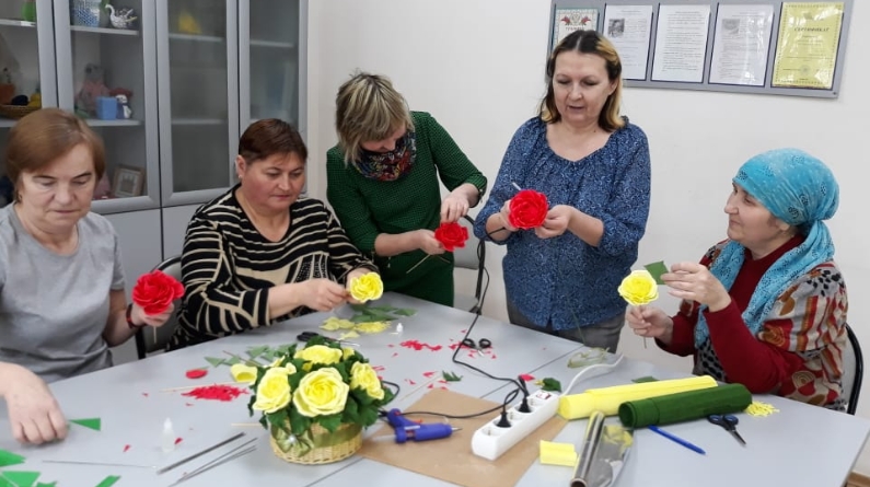 Кичә, 3 март көнне, Яр Чаллы шәһәренең «Изгелек» инвалидларны тернәкләндерү үзәгенең комплекслы тернәкләндерү буенча белгече Галия Петрова кәгазьдән чәчәк ясау буенча мастер-класс үткәрде. Халыкара хатын-кызлар көненә багышланган иҗади чарада социаль хезмәт алучылар катнашты.