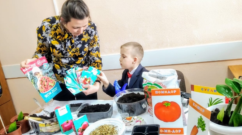 Яшь бакчачы остаз белән бергә тәрәзә төбендә кечкенә генә бакча булдырдылар. Анда алар помидор, борыч һәм төрле чәчәк орлыклары утырттылар.