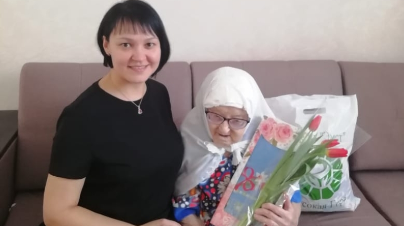 Язгы бәйрәм уңаеннан «Өмет» комплекслы үзәге хезмәткәрләре Шәмсеруй Низаметдин кызына нык сәламәтлек, озын гомер теләделәр, шулай ук чәчәкләр һәм истәлекле бүләк тапшырдылар.