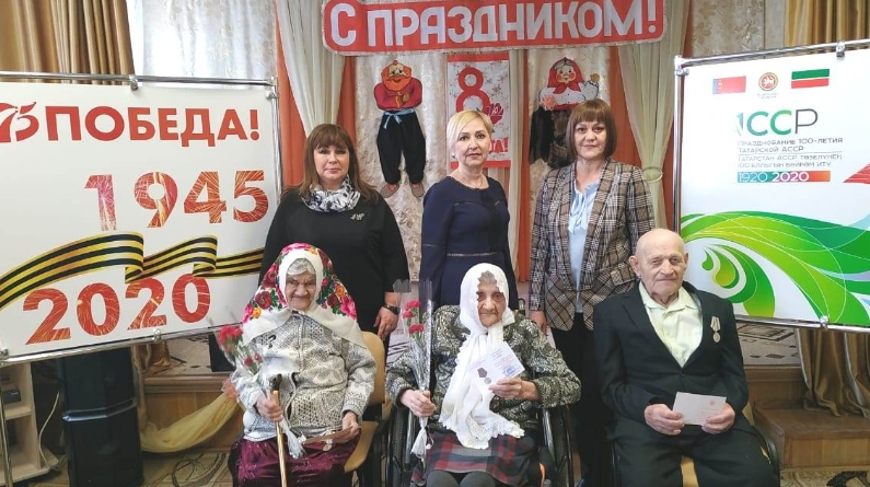 Тыл хезмәтчәннәрен котларга район башкарма комитеты җитәкчесенең социаль мәсьәләләр буенча урынбасары Нэля Бикеева, социаль яклау бүлеге мөдире Татьяна Мясникова килгән иде. Алар өлкәннәргә лаеклы бүләкләр тапшырдылар.