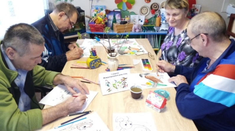 Аннары өлкән яшьтәге кешеләр һәм инвалидлар изотерапия буенча күнегүләр ясадылар – кошлар сурәтләрен бизәделәр. Бу аларга тискәре эмоцияләрне җиңәргә, нерв-психик киеренкелекне бетерергә мөмкинлек бирде. 1 апрель – Көлке көне дә булуын исәпкә алып, очрашуны «Кызык һәм акыллы кошлар» видеосын карау белән тәмамладылар.