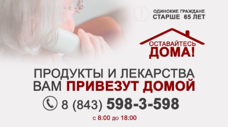 Белгечләр 65 яшьтән өлкәнрәк ялгыз һәм ялгыз яшәүче гражданнарның өйләренә азык-төлек продуктлары һәм дару препаратлары китерүне оештыруда ярдәм итәләр.