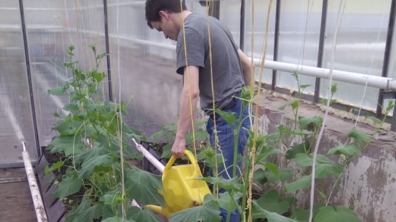 Балалар үзләре утырткан үсентеләрне үзләре карыйлар. Бүген үсентеләр чәчәк инде ата, һәм балалар беренче кыяр уңышын көтәләр. Балалар йорты тәрбиячеләре үз тәрбияләнүчеләренең мөстәкыйльлеге һәм җаваплылыгы белән бик горурланалар. Алган күнекмәләр балаларга киләчәк тормышта ярдәм итәчәк.