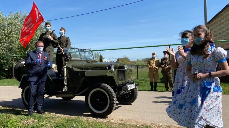Бәйрәм геройларын район башлыгы Валерий Чершинцев, табиб-волонтерлар һәм яшь армиячеләр котлады. Бөек Ватан сугышы ветераннарына чәчәкләр, бүләкләр һәм юбилей медальләре тапшырылды. Алар өчен шулай ук күчмә концерт программасы да оештырылган иде.