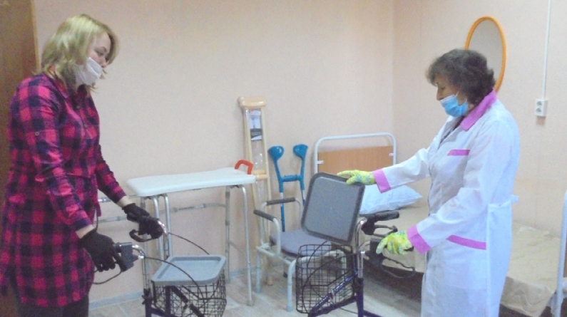 Тәрбия эффектив рәвештә узсын өчен, кабинетларны махсус җайланмалар белән җиһазландырырга кирәк. Бу максаттан урын өстендәге авырулар өчен өч секцияле функциональ карават, күгәрекләр барлыкка килүгә каршы матраслар, йөрергә ярдәм итә торган коляскалар, култык таяклары, баудан үрелгән баскыч, хәрәкәтләнергә булыша торган махсус каеш, авыруны башка җиргә утыртырга ярдәм итә торган такта сатып алынды.