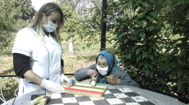 Өлкән яшьтәге гражданнар һәм инвалидларны озак вакыт карау системасын гамәлгә кертү кысаларында Минзәлә өлкәннәр һәм инвалидлар өчен интернат-йортының социаль эш буенча белгече Ирина Мөслимова «Пертра» терапия комплексын кулланып чара үткәрде.