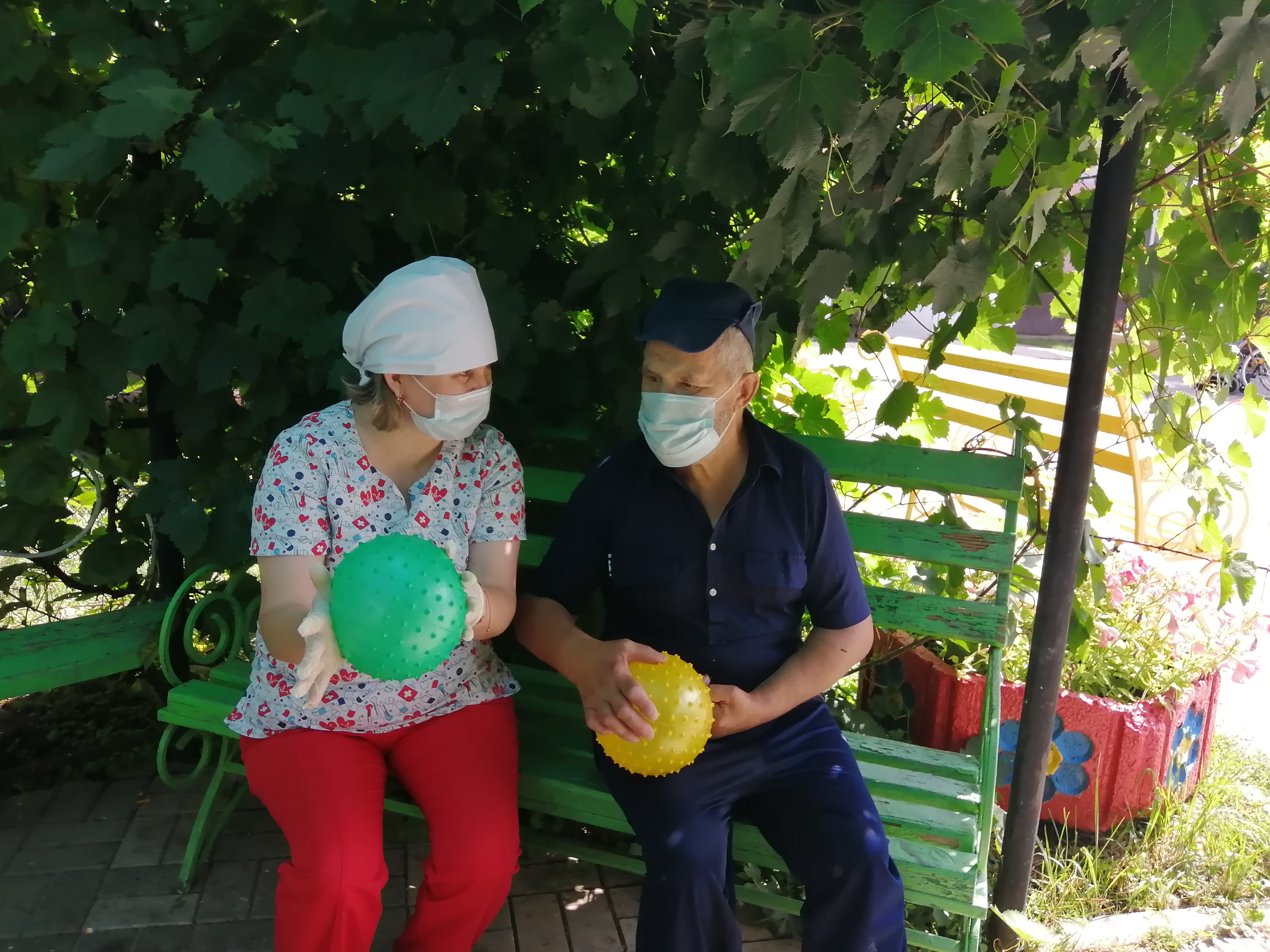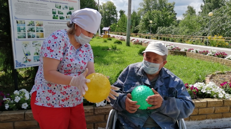 Өлкән яшьтәге гражданнар һәм инвалидларны озак вакыт карау системасын гамәлгә кертү кысаларында Минзәлә өлкәннәр һәм инвалидлар өчен интернат-йортында аз хәрәкәтләнүче социаль хезмәт алучылар белән индивидуаль дәресләр үткәрелә. Бүген, кулларның вак моторикасын торгызу максатларында, шәфкать туташы туп белән дәресләр үткәрде.