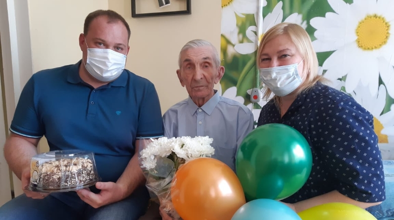 Ветеранны 98 яшьлек юбилее белән интернат-йорт директоры Кирилл Мокшин һәм директор урынбасары Александра Козловская котладылар. Серафим Борисовичка ныклы сәламәтлек, озын гомер теләделәр һәм татлы бүләк тапшырдылар.