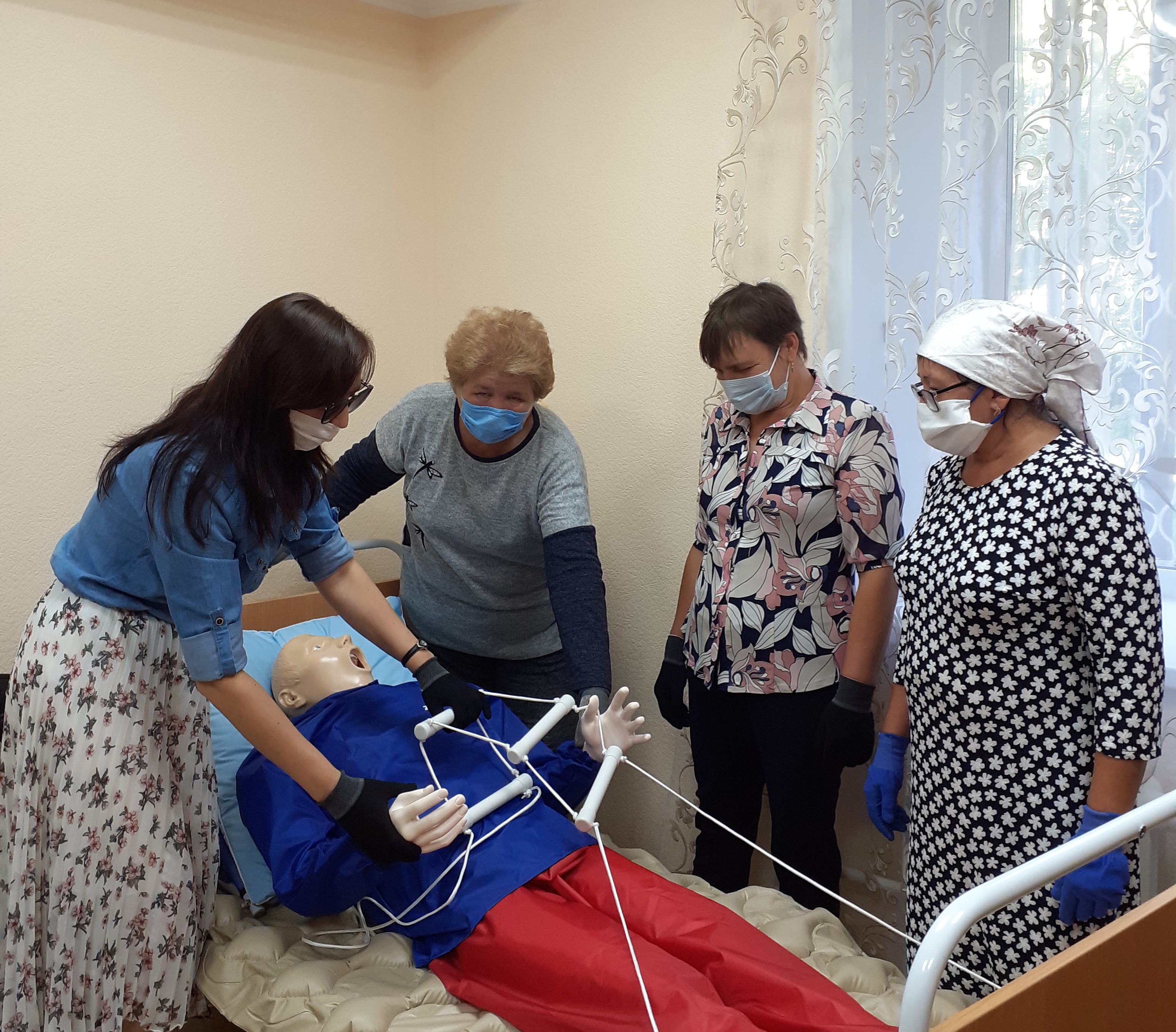 Шулай ук комплекслы үзәк белгечләре дәрестә катнашучыларга яткан авыруны урын өстендә дөрес урнаштыру буенча хәрәкәтләр күрсәттеләр.