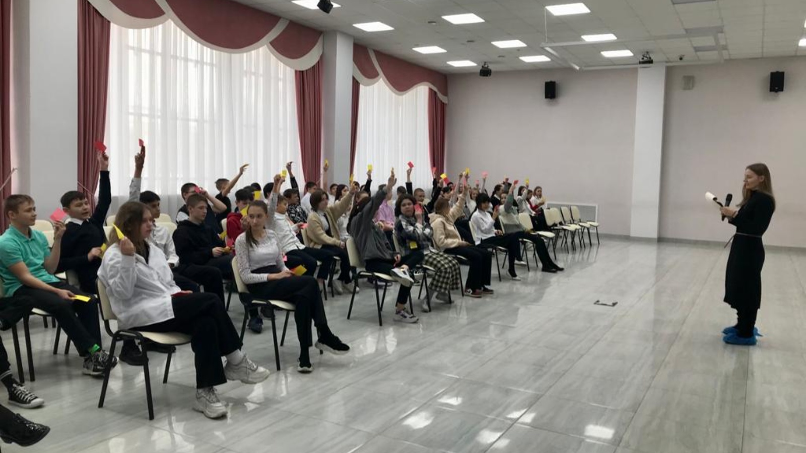 Балалар кадаклар турындагы гыйбрәтле хикәя тыңладылар һәм фикер алыштылар, сары һәм кызыл төстәге карточкалар кулланып интерактив уен уйнадылар. Психолог төрле хәлләр турында сөйләде, яшүсмерләр аларны бәяләде, җавап бирде, шулай ук РФ Җинаять кодексының һәр ситуациягә кагылышлы статьяларын атады.