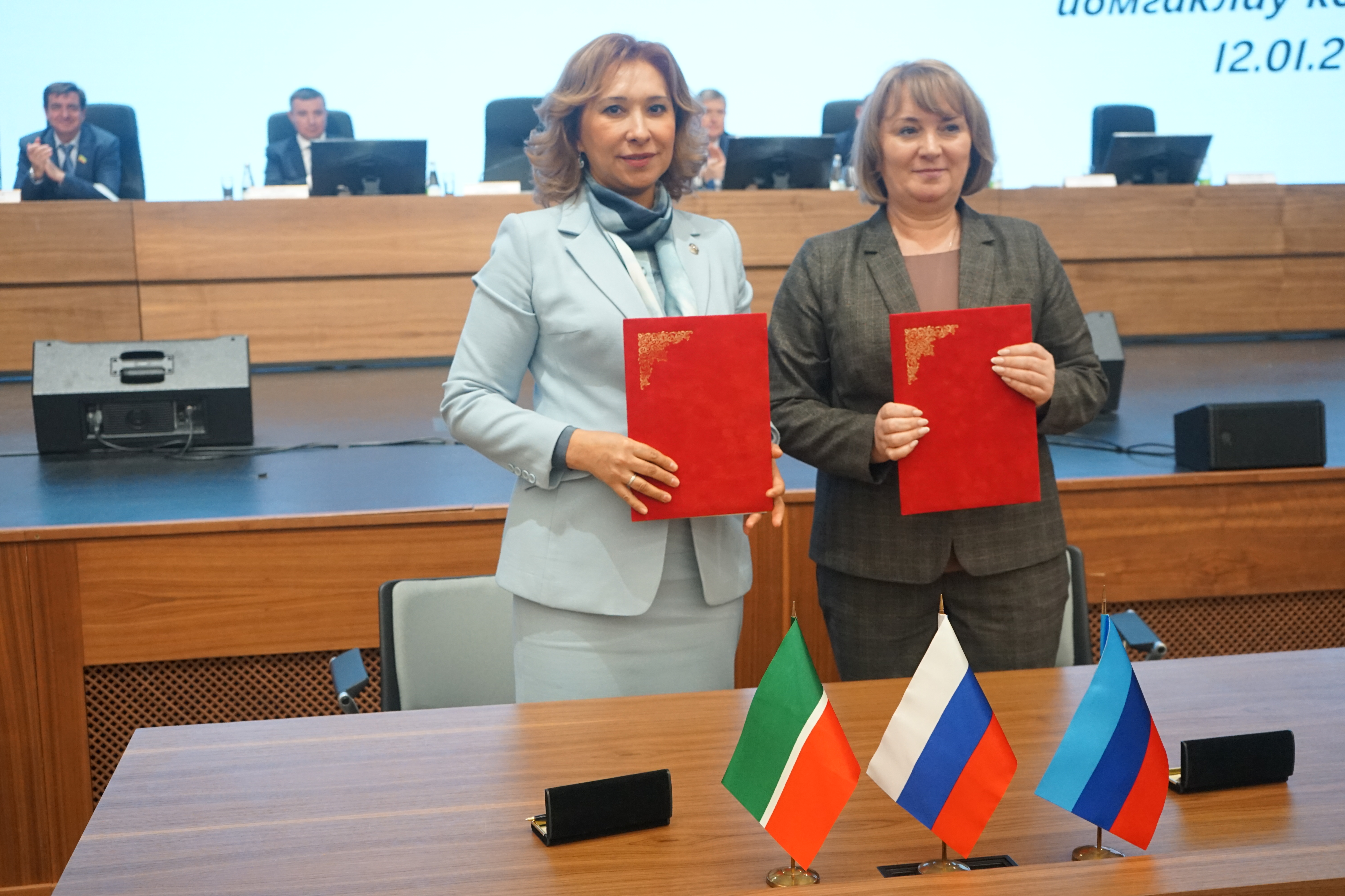 12 гыйнварда, ведомствоның йомгаклау коллегиясе утырышы кысаларында, Татарстан Республикасы Хезмәт, халыкны эш белән тәэмин итү һәм социаль яклау министрлыгы һәм Луганск Халык Республикасы Хезмәт һәм социаль сәясәт министрлыгы гражданнарны эш белән тәэмин итү, социаль хезмәт күрсәтү һәм социаль яклау системасын камилләштерү максатларында хезмәттәшлек турында килешү төзеделәр. Документны министрлар Эльмира Зарипова һәм Елена Макаренко имзалады.