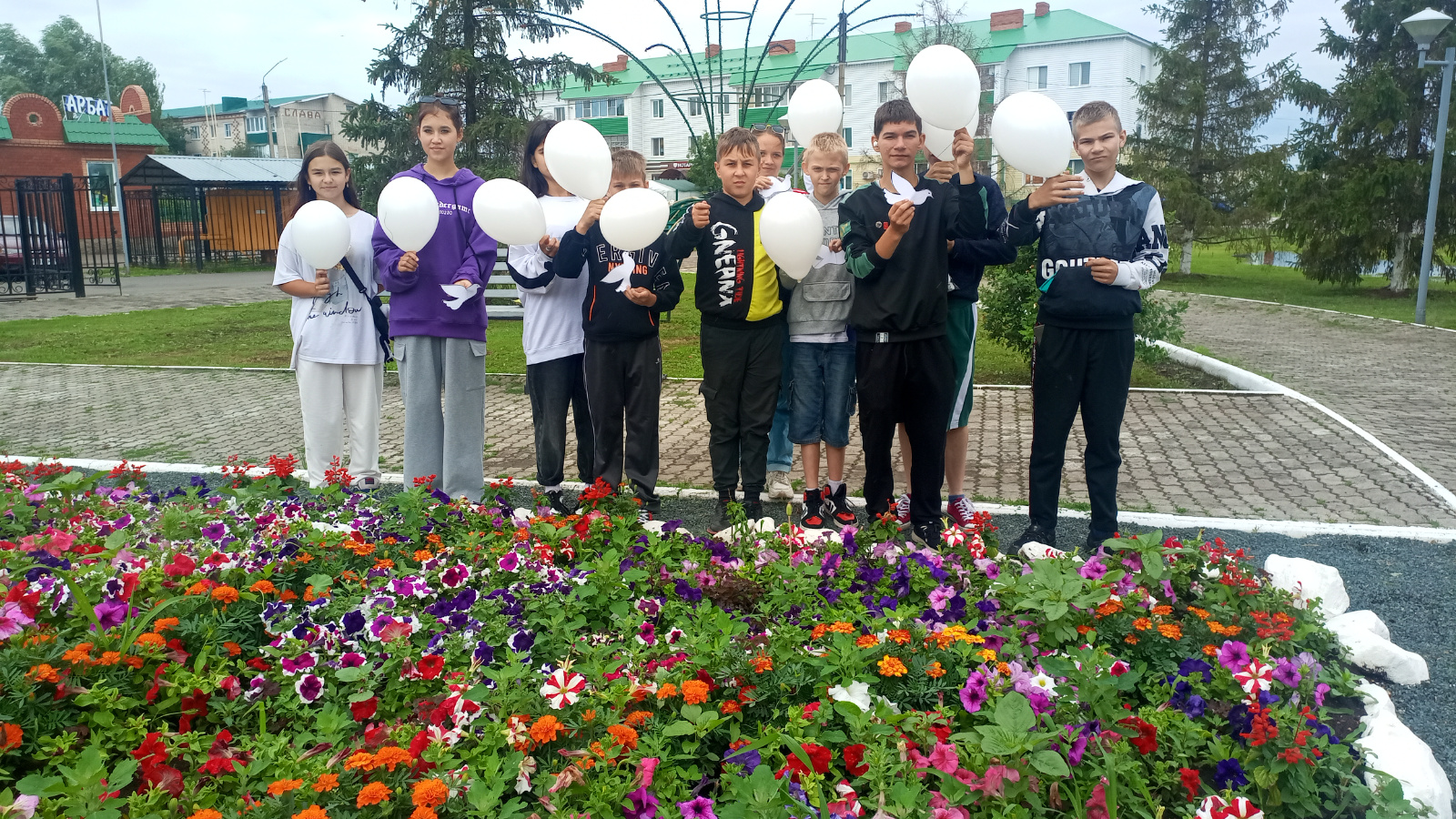 Дәрес ахырында акциядә катнашучылар һәлак булган балаларны бер минут тынлык белән искә алдылар һәм күккә кәгазь күгәрченнәр белән ак шарлар җибәрделәр.