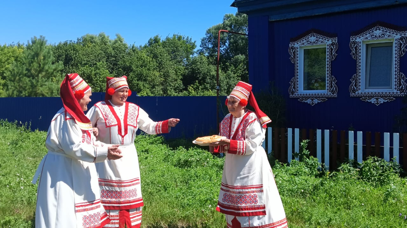 Бүген социаль хезмәтләр алучылар матур милли костюмнарда Петр көнен бәйрәм итүне сәхнәләштерделәр.