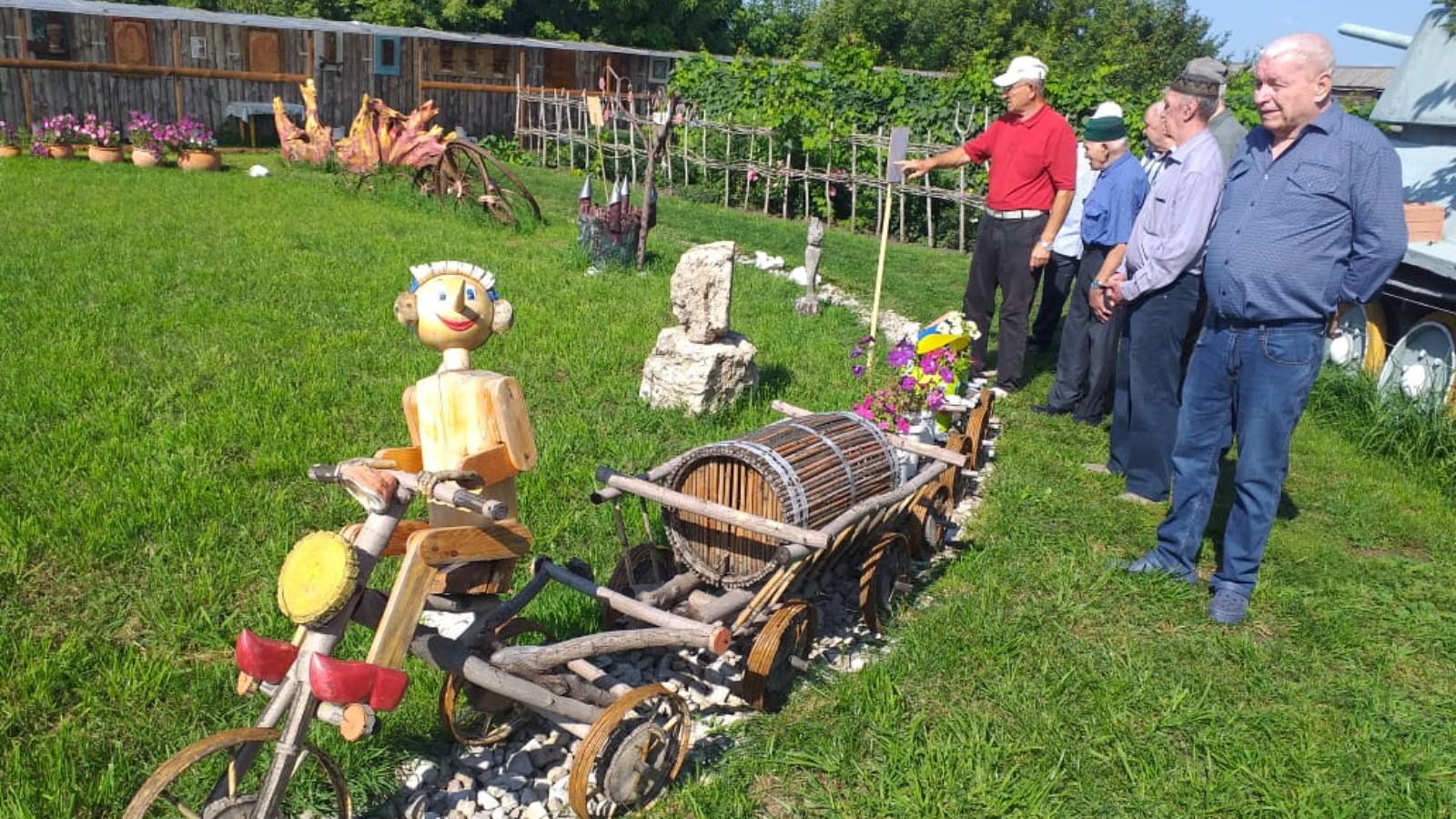 Экскурсовод үзенең мавыгулары турында сөйләде, ә ахырда барысын да үзе үстергән сортлы карбызлар белән сыйлады.
