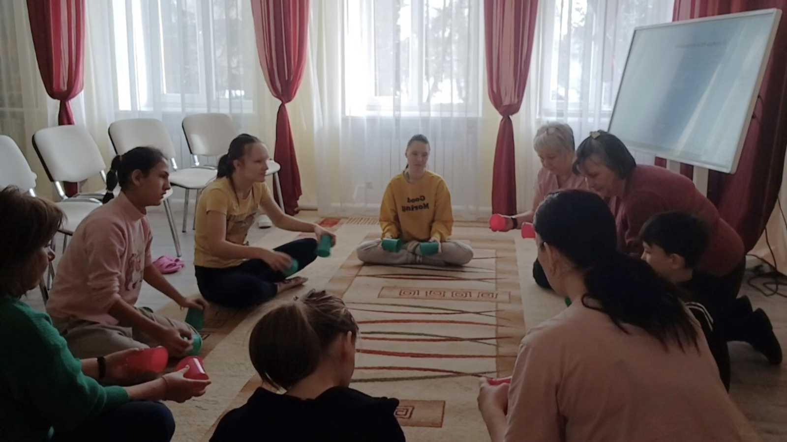 «Яңарыш» мөмкинлекләре чикләнгән балалар һәм яшүсмерләр өчен тернәкләндерү үзәгендә социаль педагог Ирина Вдовина нейроритмика буенча дәресләр үткәрә. Алар хәрәкәт активлыгын үстерүгә, балаларның эмоциональ халәтен гармонияләштерүгә һәм координацияләүне яхшыртуга юнәлдерелгән.