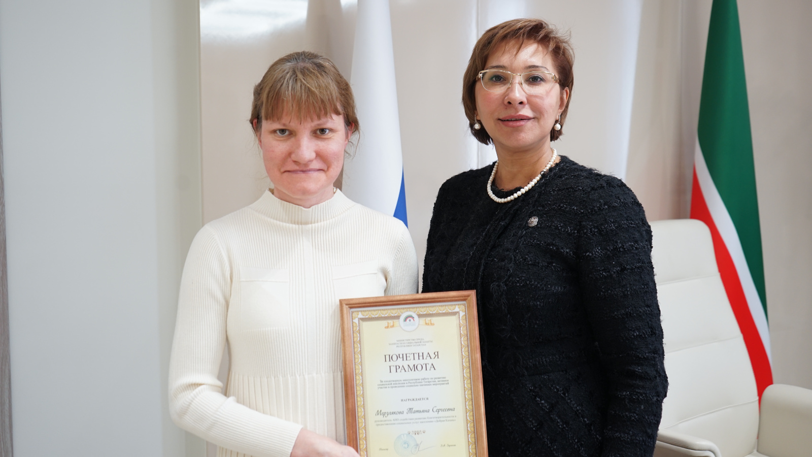 Нәтиҗәле хезмәте, махсус ихтыяҗлары булган балалар үсешенә керткән зур өлеше, социализация процессында ата-аналарга һәм балаларга ярдәм иткәне өчен «Игелекле Казан» автоном коммерциячел булмаган оешмасы директоры Татьяна Мерзлякова Татарстан Республикасы Хезмәт, халыкны эш белән тәэмин итү һәм социаль яклау министрлыгының мактау грамотасы белән бүләкләнде.