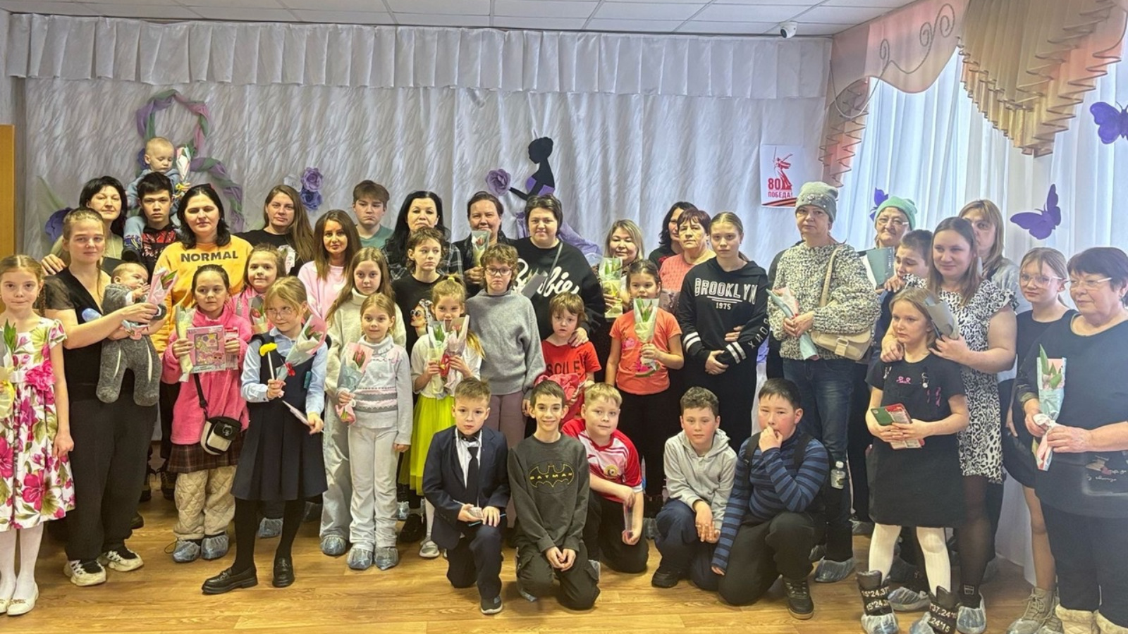 Гаиләгә һәм балаларга социаль ярдәм бүлекчәсендә социаль педагоглар Алена Овсейчик һәм Марта Камалова чара оештырдылар. Бәйрәм концерты күңелле һәм бай эчтәлекле булды: яшь артистлар җырладылар, шигырьләр укыдылар. Балалар әниләре белән төрле күңелле һәм кызыклы бәйгеләрдә һәм уеннарда катнаштылар. Ахырда барлык хатын-кызлар да хәйриячеләрдән лаләләр алды.