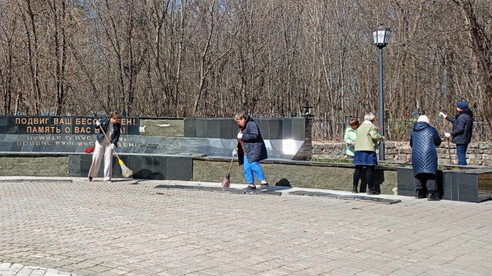 Чара барышында үзәк хезмәткәрләре Бөек Ватан сугышы геройлары мемориалын тәртипкә китерделәр.