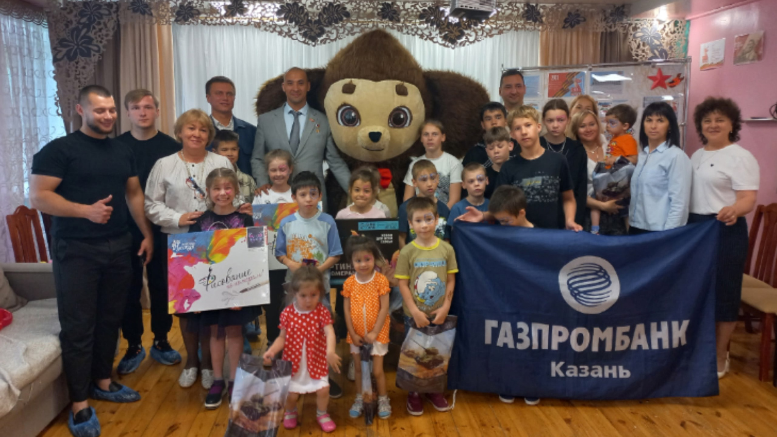 Казаннан «Газпромбанк» хезмәткәрләре Аксубай районының «Хыял» балалар һәм яшүсмерләр социаль приютында тәрбияләнүчеләр өчен бәйрәм оештырды.